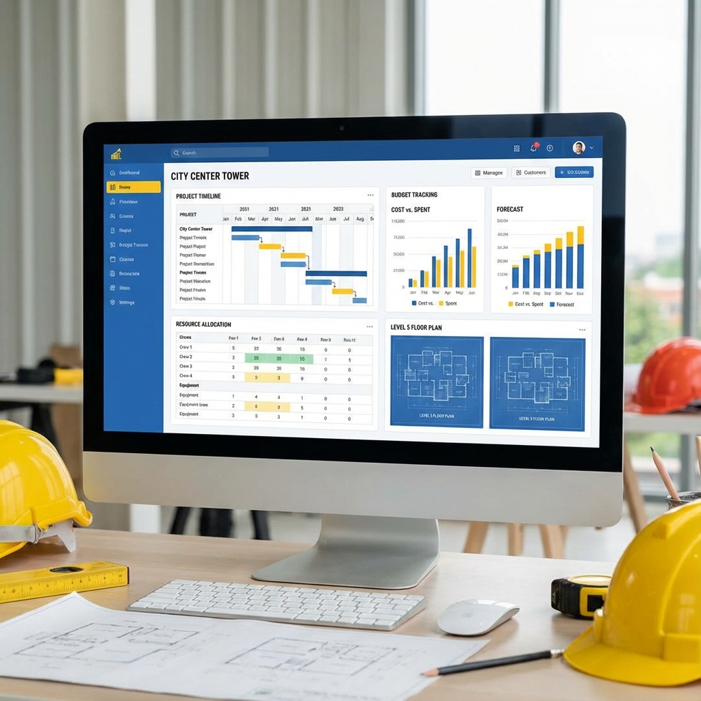 A comprehensive project management and CRM solution tailored for the construction industry, featuring timeline tracking, budget analysis, and resource allocation tools.