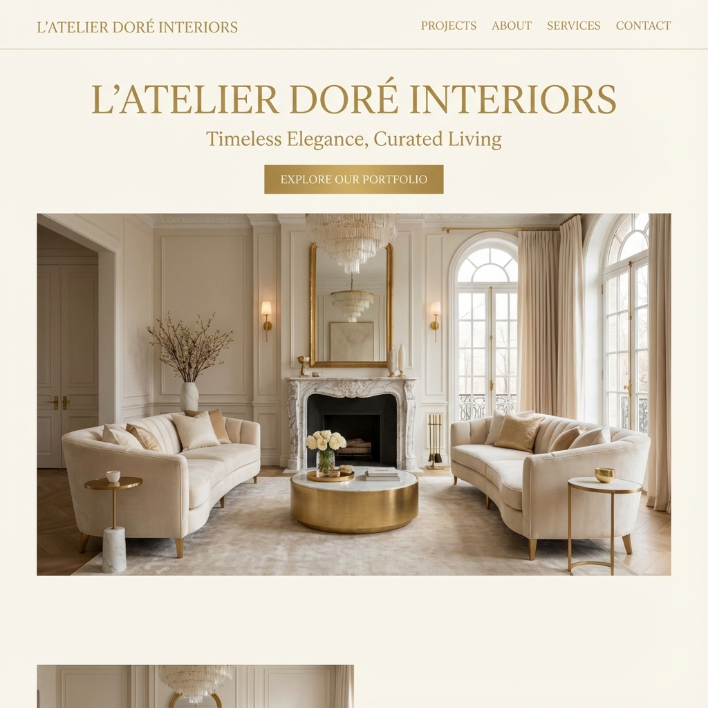 A sleek, responsive website for a high-end interior design brand, highlighting elegant residential and commercial solutions with a focus on visual storytelling and performance.