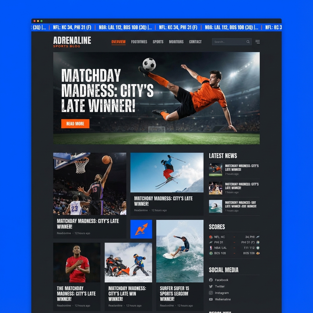 A dynamic content platform for sports enthusiasts to publish and engage with blogs, featuring a clean editorial interface, integrated revenue models, and real-time updates.